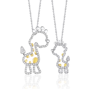 Standing tall in the wild, giraffes can see long distances and discern dangers coming from afar. As Mom Giraffe keeps a sharp lookout to keep Baby Giraffe safe, the two can take a leisurely stroll across the plains. The Mom Giraffe and Baby Giraffe pendants are made with 18K white gold, yellow gold and white diamonds. The golden spots add an adorable touch to the giraffes, as Mom Giraffe keeps watch over Baby Giraffe every day.