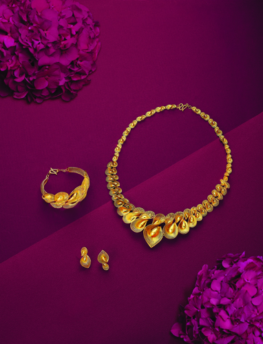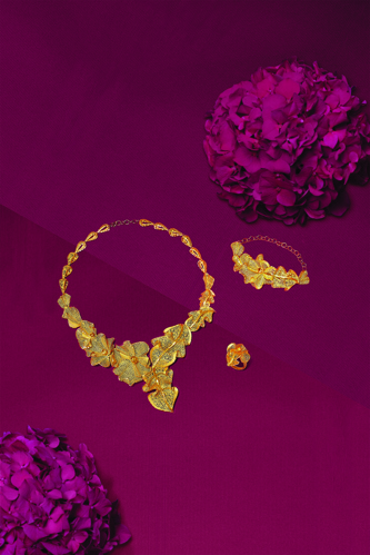 The gillyflower is a symbol of “eternal beauty”, and it carries the blessings for a lifelong and blissful union. In an innovative display of superb craftsmanship, Emperor Jewellery’s artisans have rendered the delicate petals in triangular, geometric nets that spell a uniquely stylish spark. The striking triangular net in openwork design not only brings a shimmering and refractive texture to the fine gold, but also reveals the opulent beauty of the gillyflower petals. The lace-like texture entices with a subtle glamour, as the gillyflower emanates a radiant grandeur. In their splendid and three-dimensional rendition, the rippling leaves lend a distinctly contemporary charm to traditional fine gold jewellery.
